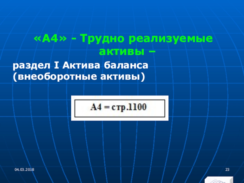 Слайд 23«А4» - Трудно реализуемые активы –