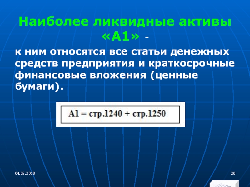 Слайд 20Наиболее ликвидные активы «А1» -