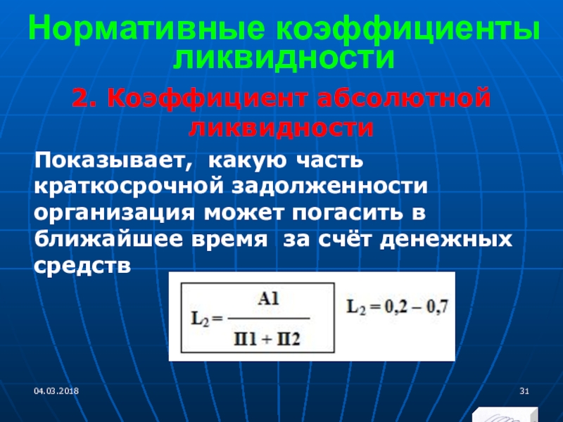 2. Коэффициент абсолютной ликвидности