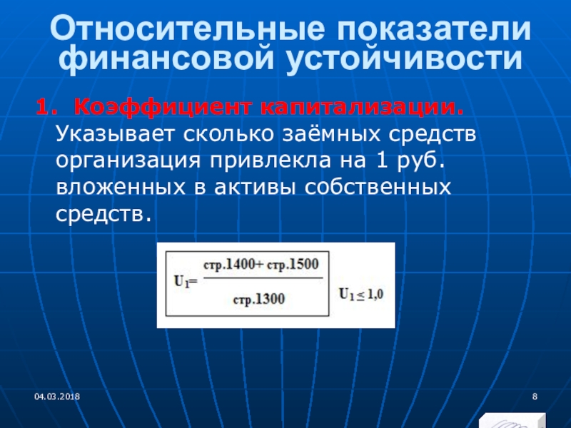 1. Коэффициент капитализации. Указывает сколько заёмных