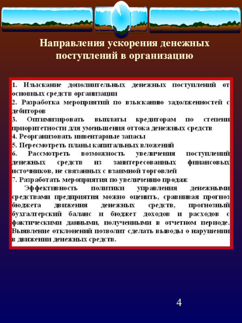 Управление денежными потоками является одним из важнейших направлений деятельности финансового менеджера. Управление денежными потоками включает в себя: