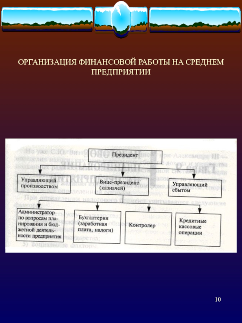 Слайд 10ОРГАНИЗАЦИЯ ФИНАНСОВОЙ РАБОТЫ НА СРЕДНЕМ ПРЕДПРИЯТИИ