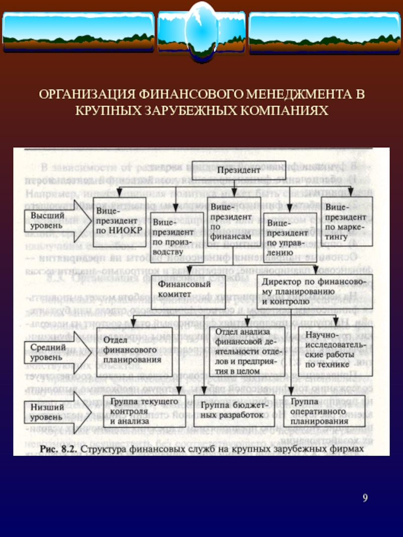 Слайд 9ОРГАНИЗАЦИЯ ФИНАНСОВОГО МЕНЕДЖМЕНТА В КРУПНЫХ ЗАРУБЕЖНЫХ КОМПАНИЯХ