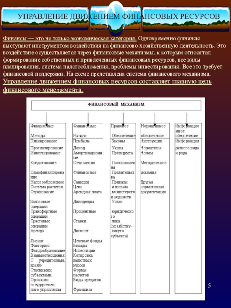 Слайд 5УПРАВЛЕНИЕ ДВИЖЕНИЕМ ФИНАНСОВЫХ РЕСУРСОВ