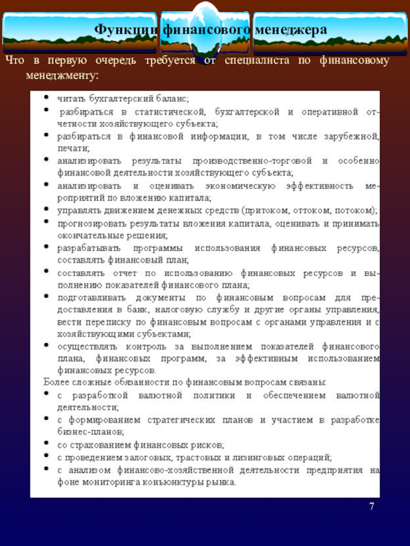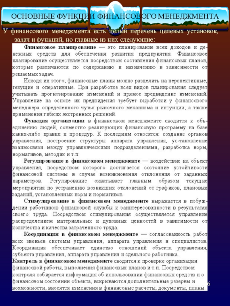 Слайд 6ОСНОВНЫЕ ФУНКЦИИ ФИНАНСОВОГО МЕНЕДЖМЕНТА