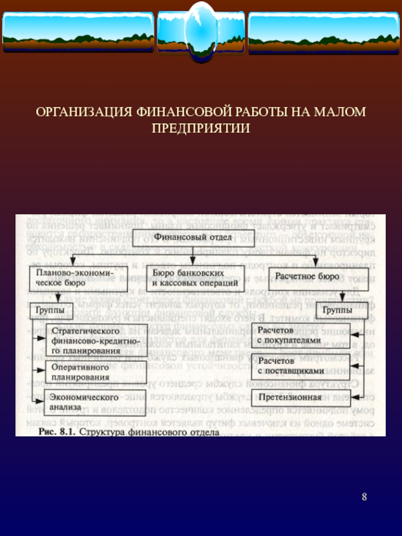 Слайд 8ОРГАНИЗАЦИЯ ФИНАНСОВОЙ РАБОТЫ НА МАЛОМ ПРЕДПРИЯТИИ