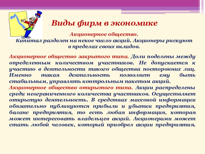 Акционерное общество открытого типа. Акции распределены среди неограниченного количества участников. Осуществляет открытую деятельность. В средствах массовой информации обязательно публикуются прибыли и убытки предприятия, баланс предприятия, то есть любая информация, которая может интересовать владельцев акций. Акционерами может стать любой человек, который приобрел акции предприятия.