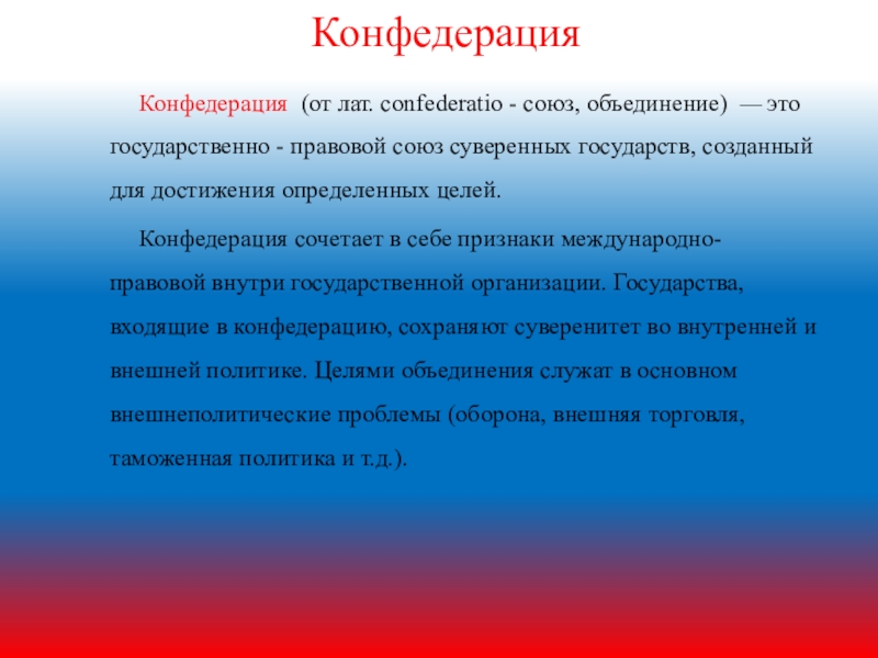 Конфедерация (от лат. confederatio - союз, объединение) — это государственно -