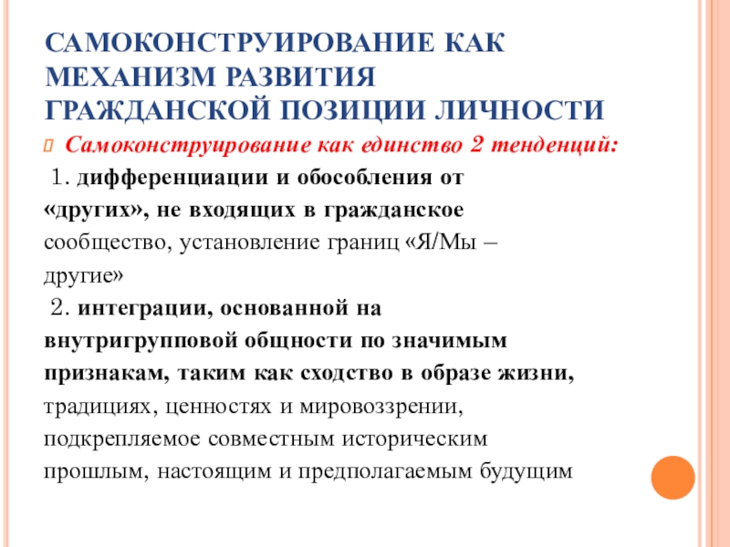Слайд 11САМОКОНСТРУИРОВАНИЕ КАК МЕХАНИЗМ РАЗВИТИЯ