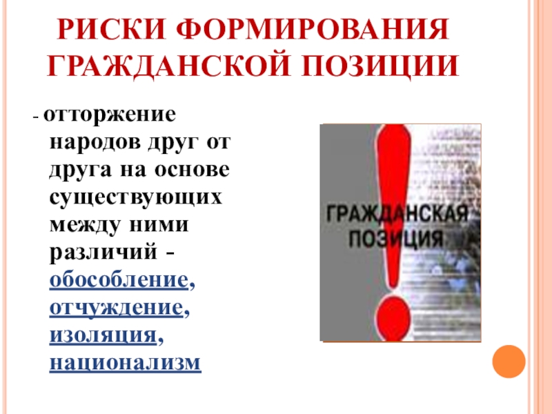 Слайд 12РИСКИ ФОРМИРОВАНИЯ ГРАЖДАНСКОЙ ПОЗИЦИИ