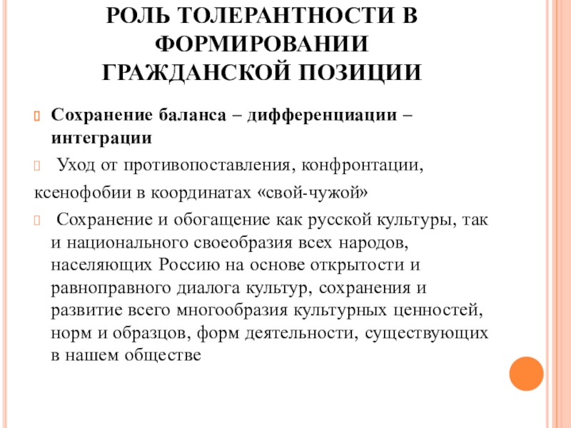 Слайд 13РОЛЬ ТОЛЕРАНТНОСТИ В ФОРМИРОВАНИИ