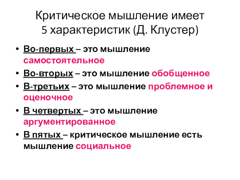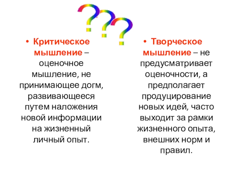 Слайд 32Критическое мышление – оценочное мышление, не принимающее догм, развивающееся путем наложения