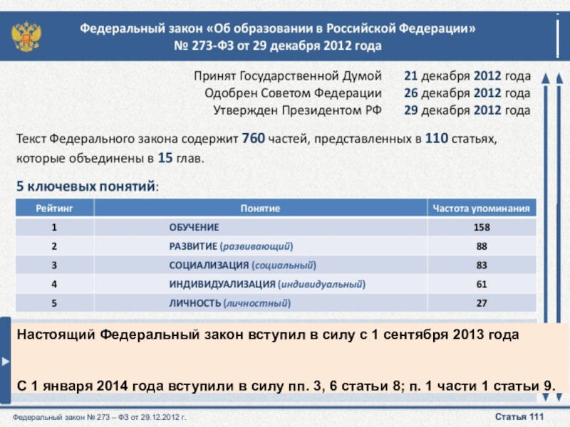 Настоящий Федеральный закон вступил в силу с 1 сентября 2013 года