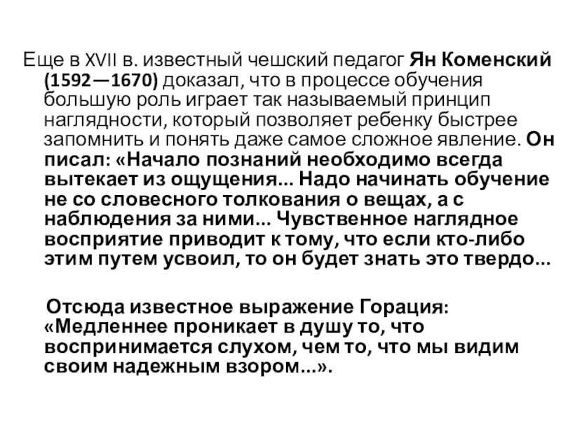 Слайд 34Еще в XVII в. известный чешский педагог Ян Коменский (1592—1670) доказал,