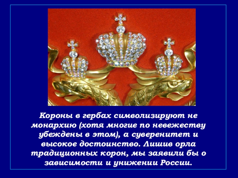 в этом), а суверенитет и высокое достоинство. Лишив орла традиционных корон, мы заявили бы о зависимости и унижении России.