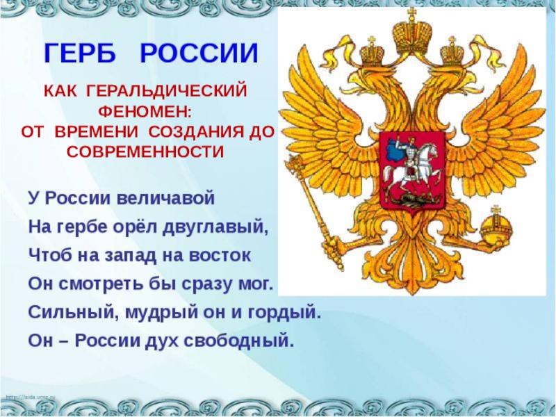 Презентация, доклад на тему ГЕРБ РОССИИ КАК ГЕРАЛЬДИЧЕСКИЙ ФЕНОМЕН: ОТ ВРЕМЕНИ СОЗДАНИЯ ДО СОВРЕМЕННОСТИ
