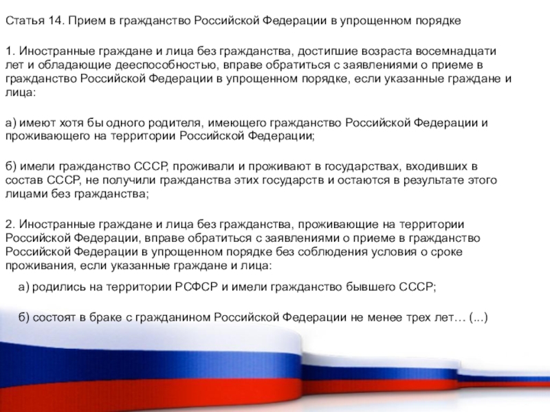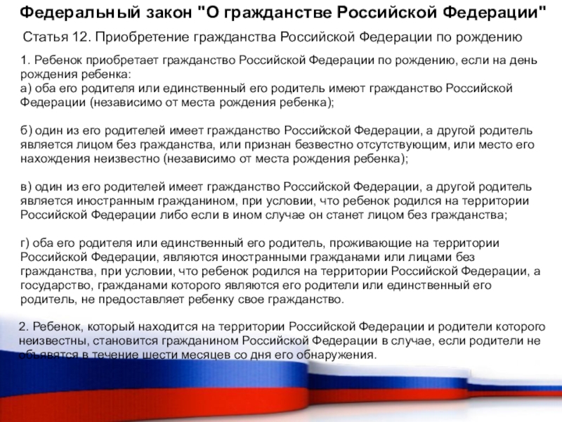 Статья 12. Приобретение гражданства Российской Федерации по рождению