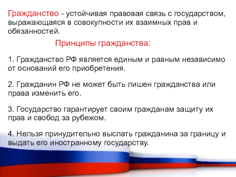 1. Гражданство РФ является единым и равным независимо от оснований его приобретения.