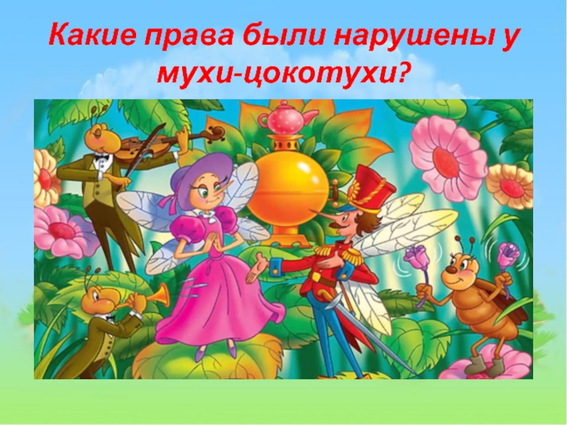 Слайд 32Какие права были нарушены у мухи-цокотухи?