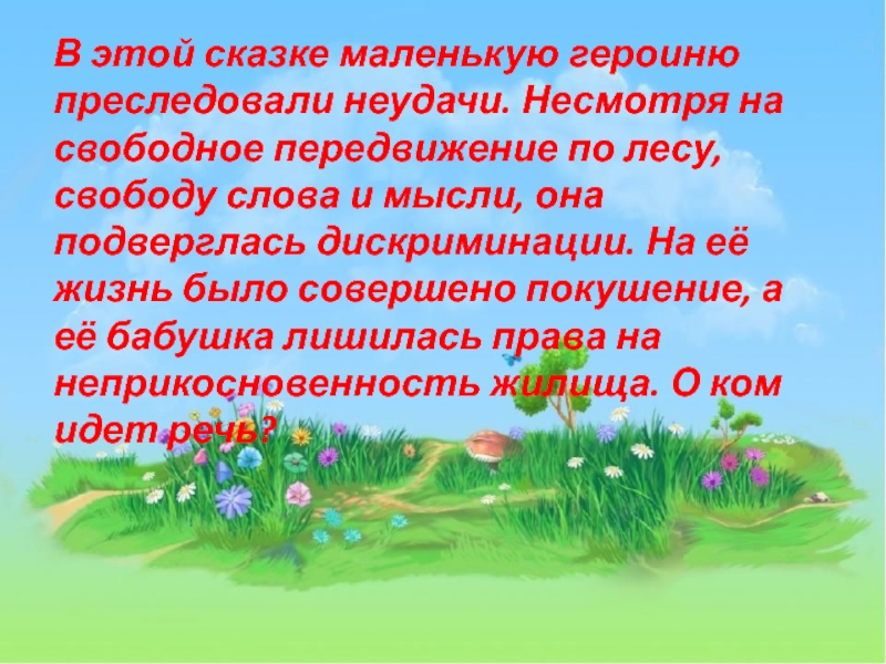 Слайд 23В этой сказке маленькую героиню преследовали неудачи. Несмотря на свободное передвижение