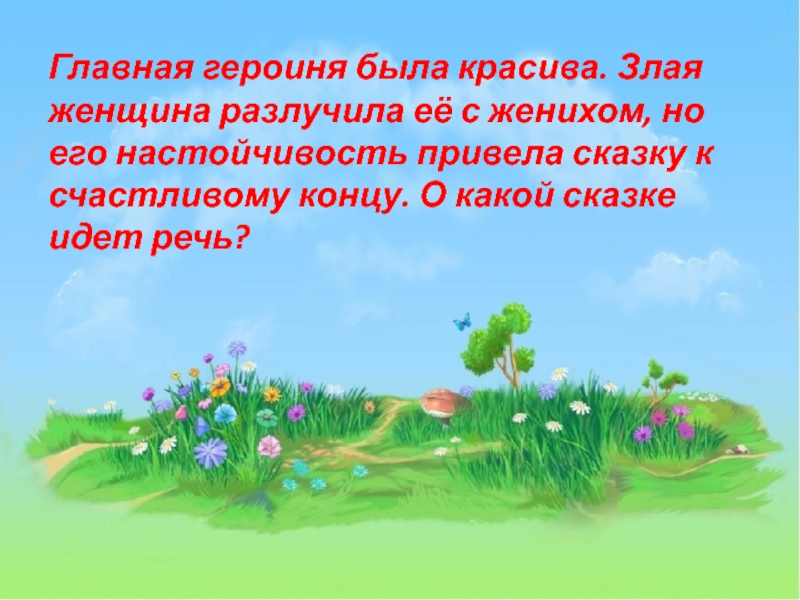 Слайд 28Главная героиня была красива. Злая женщина разлучила её с женихом, но