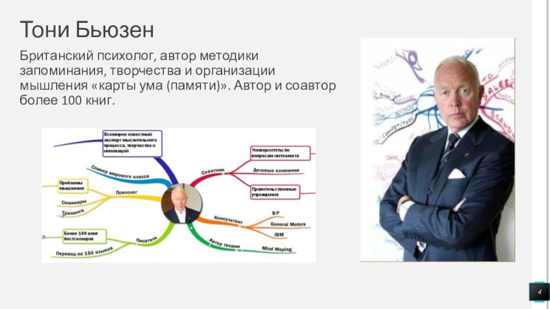 Британский психолог, автор методики запоминания, творчества и организации мышления «карты