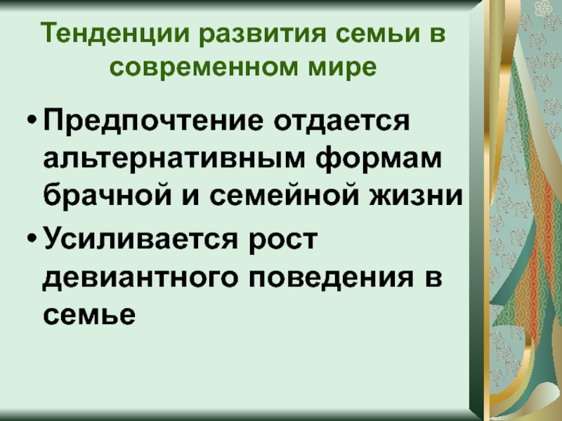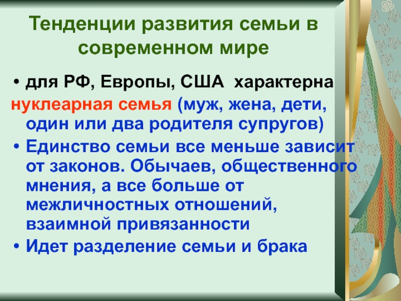 Слайд 28ТЕНДЕНЦИИ РАЗВИТИЯ СЕМЬИ В СОВРЕМЕННОМ МИРЕ.
