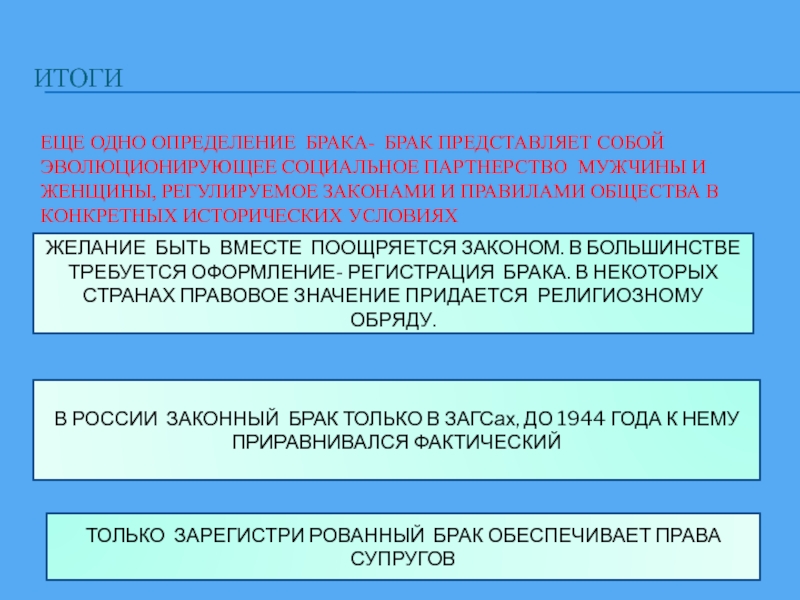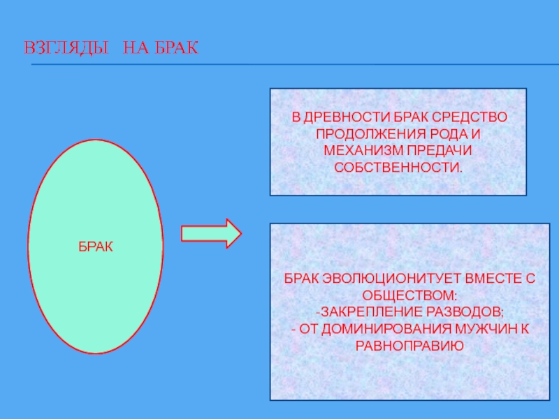 БРАК – ЭТО ИСТОРИЧЕСКИ МЕНЯЮЩАЯСЯ СОЦИАЛЬНАЯ ФОРМА ОТНОШЕНИЙ МЕЖДУ МУЖЧИНОЙ И ЖЕНЩИНОЙ, ПОСРЕДСТВОМ КОТОРОЙ ОБЩЕСТВО УПОРЯДЫЧИВАЕТ И САНКЦИОНИРУЕТ ИХ ПОЛОВУЮ ЖИЗНЬ И УСТВНАВЛИВАЕТ ИХ С УПРУЖЕСКИЕ И РОДСТВЕННЫЕ ПРАВА И ОБЯЗАННОСТИ