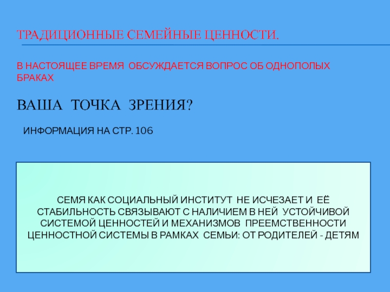 Слайд 24ТРАДИЦИОННЫЕ СЕМЕЙНЫЕ ЦЕННОСТИ.