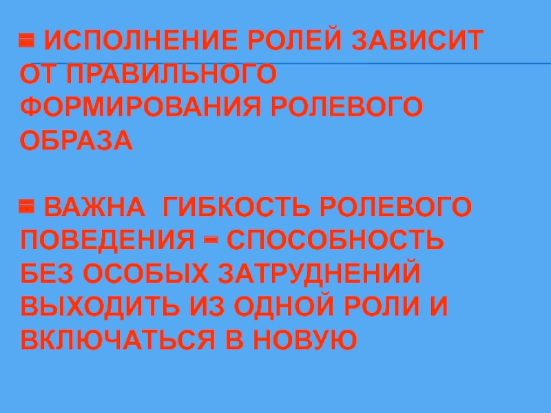 ИСПОЛНЕНИЕ РОЛИ ЗАВИСИТ ОТ ПРАВИЛЬНОГО ФЛРМИРОВАНИЯ РОЛЕВОГО ОБРАЗА. КАКОГО ПОВЕДЕНИЯ ЖДУТ ОТ ТЕБЯ. ВАЖНА ГИБКОСТЬ РОЛЕВОГО ПОВЕДЕНИЯ