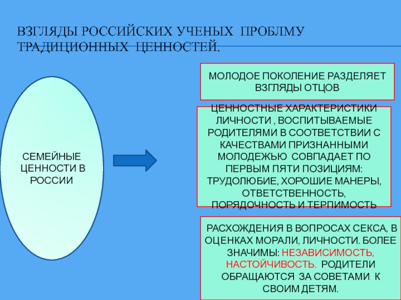 Слайд 27ВЗГЛЯДЫ РОССИЙСКИХ УЧЕНЫХ ПРОБЛМУ ТРАДИЦИОННЫХ ЦЕННОСТЕЙ.