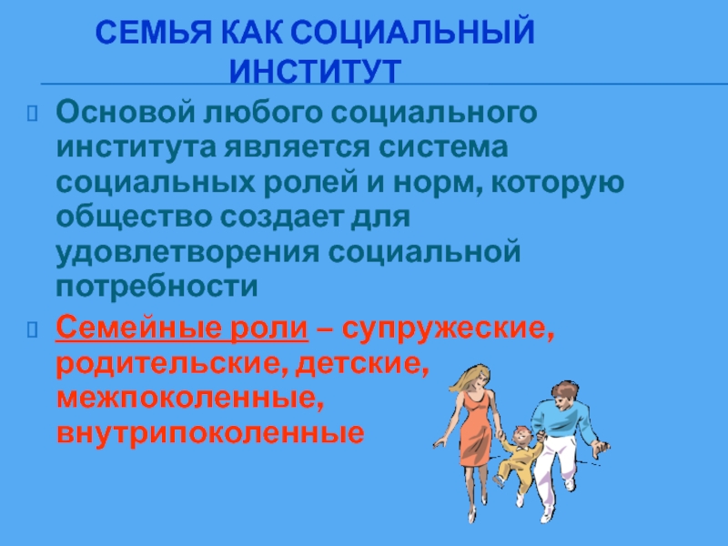 Слайд 7СЕМЬЯ КАК СОЦИАЛЬНЫЙ ИНСТИТУТ