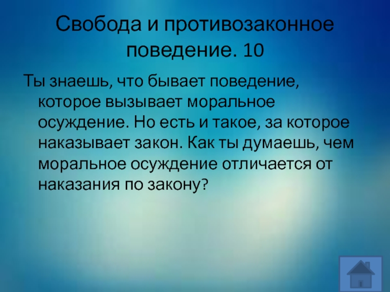 моральное осуждение. Но есть и такое, за которое наказывает закон. Как ты думаешь, чем моральное осуждение отличается от наказания по закону?