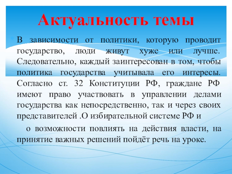 1.Граждане Российской Федерации имеют право избирать и быть избранными в органы государственной власти и органы местного самоуправления, а также участвовать в референдуме.