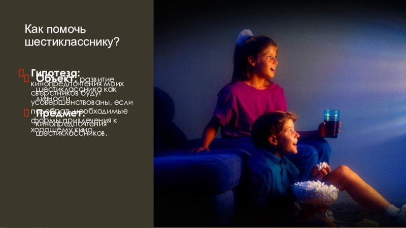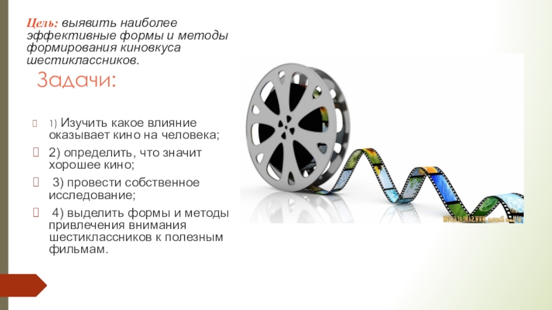 Цель: выявить наиболее эффективные формы и методы формирования киновкуса шестиклассников.