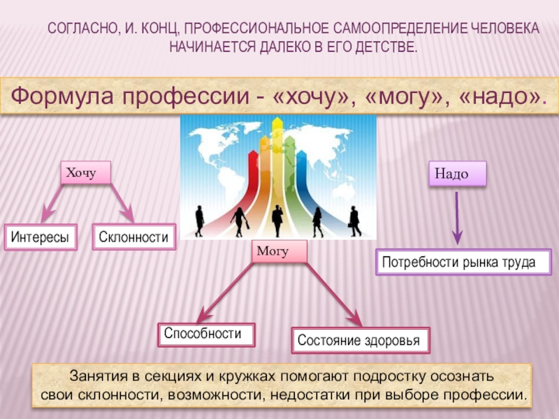 Согласно, И. Конц, профессиональное самоопределение человека начинается далеко в его детстве.