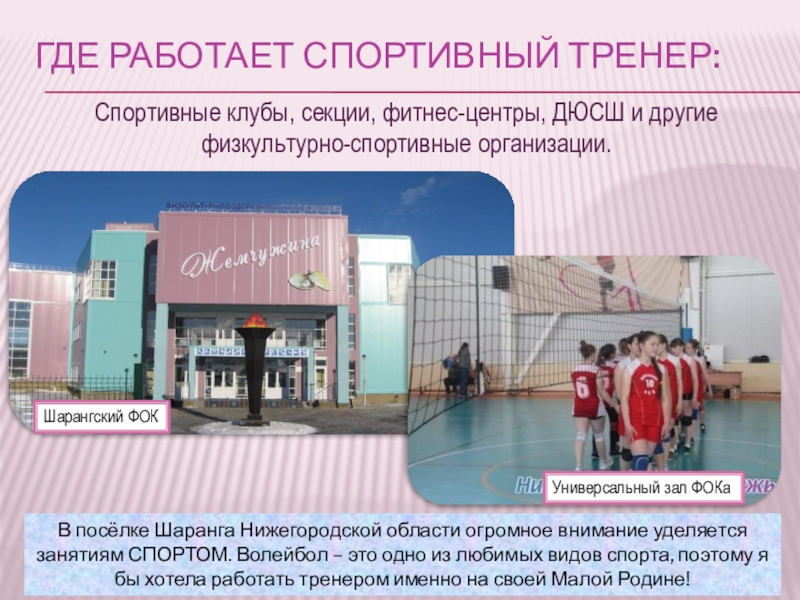 В посёлке Шаранга Нижегородской области огромное внимание уделяется занятиям СПОРТОМ. Волейбол – это одно из любимых видов спорта, поэтому я бы хотела работать тренером именно на своей Малой Родине!