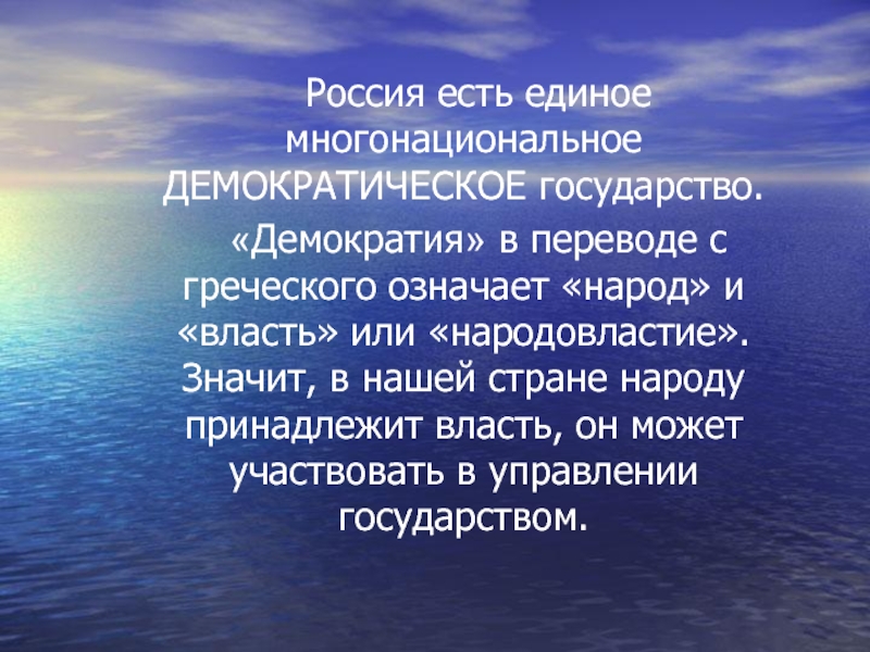 Россия есть единое многонациональное ДЕМОКРАТИЧЕСКОЕ государство.