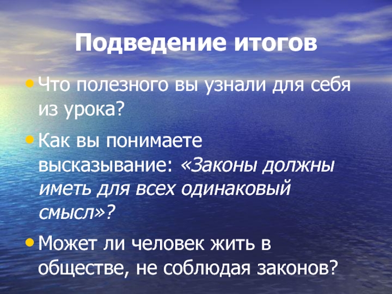 высказывание: «Законы должны иметь для всех одинаковый смысл»?