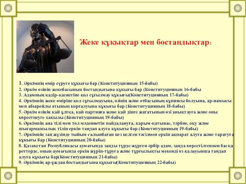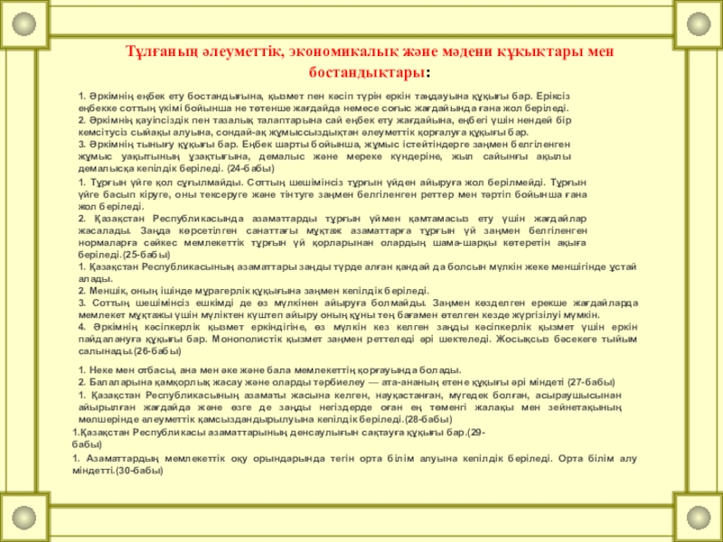 Тұлғаның әлеуметтік, экономикалық және мәдени құқықтары мен бостандықтары: