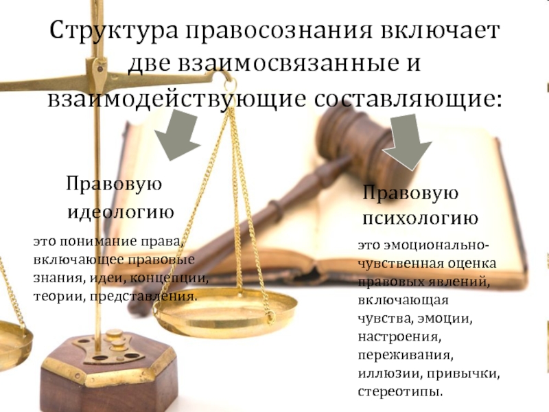 это эмоционально-чувственная оценка правовых явлений, включающая чувства, эмоции, настроения, переживания, иллюзии, привычки, стереотипы.
