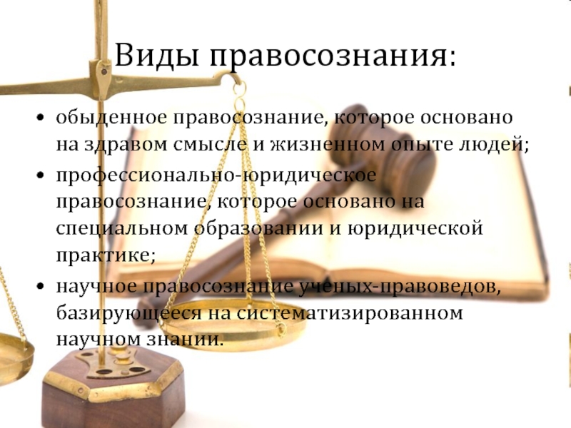 это понимание права, включающее правовые знания, идеи, концепции, теории, представления.