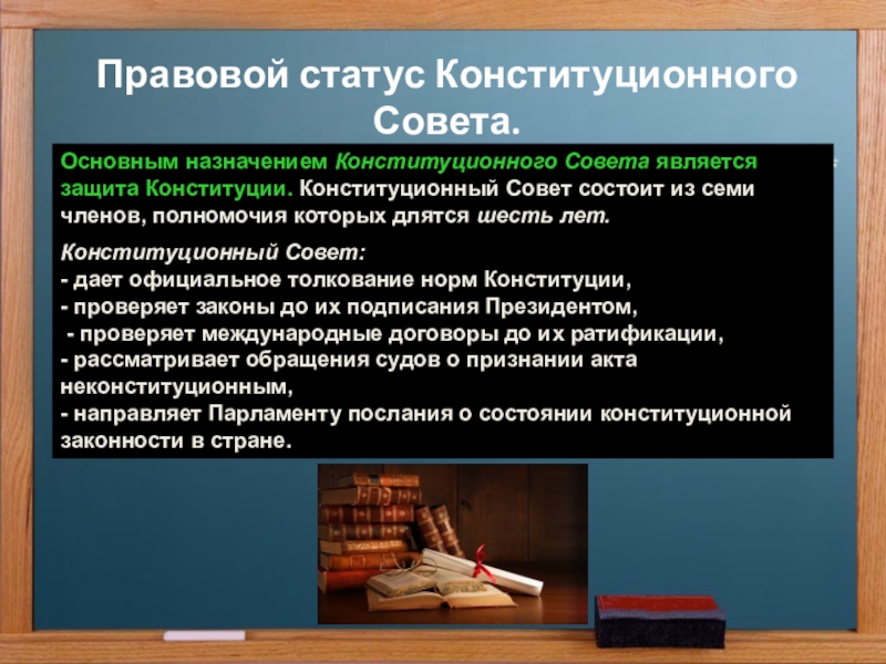 Основным назначением Конституционного Совета является защита Конституции. Конституционный