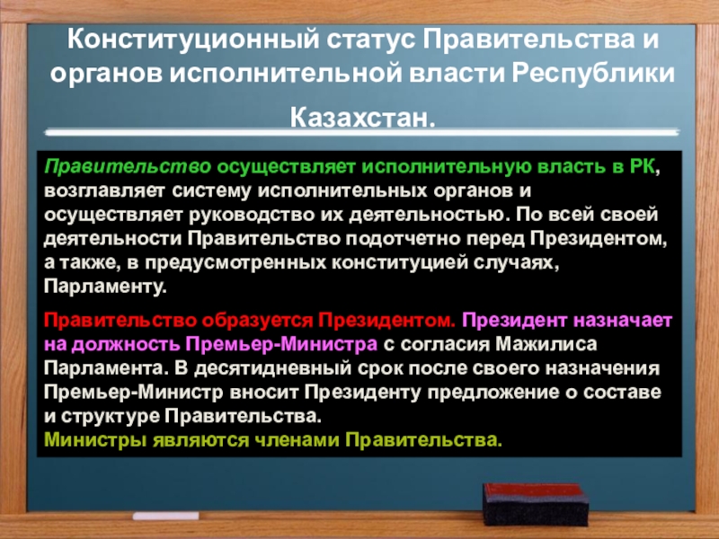 Слайд 19Конституционный статус Правительства и органов исполнительной власти Республики Казахстан.