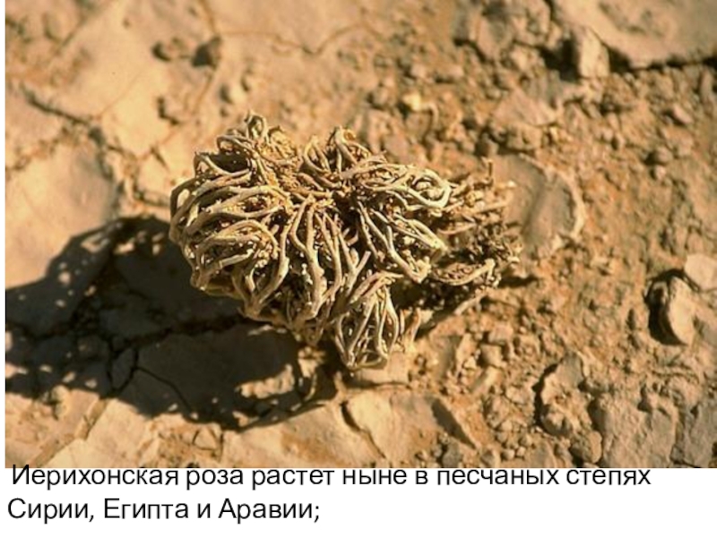 Слайд 22 Иерихонская роза растет ныне в песчаных степях Сирии, Египта и