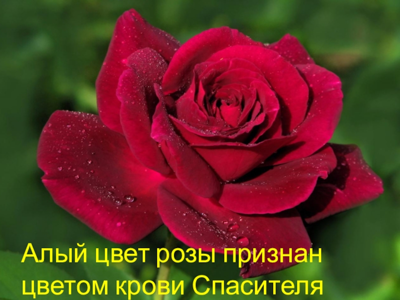 Слайд 6Алый цвет розы признан цветом крови Спасителя