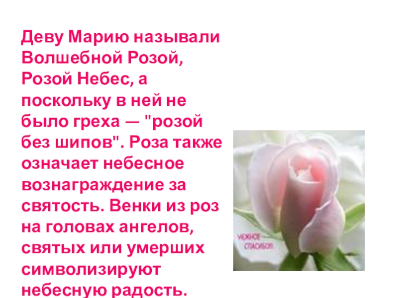 Слайд 11Деву Марию называли Волшебной Розой, Розой Небес, а поскольку в ней