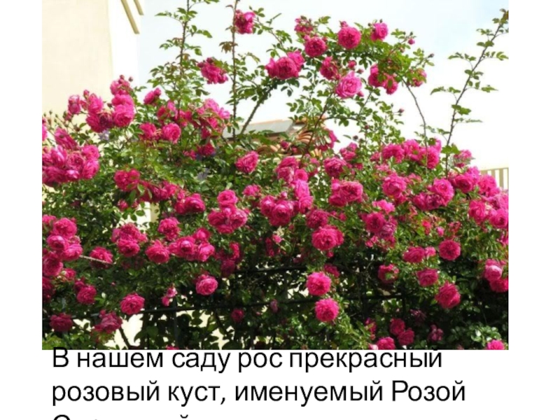 Слайд 34В нашем саду рос прекрасный розовый куст, именуемый Розой Саронской