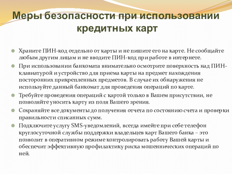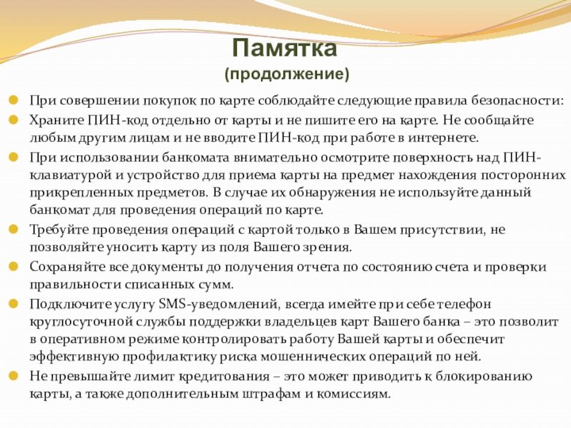 При совершении покупок по карте соблюдайте следующие правила безопасности: