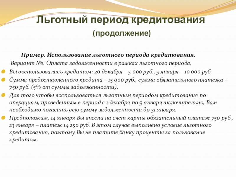 Вариант №2. Оплата задолженности после окончания льготного периода.